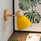 Denne væghængte LED-lampe har en cirkulær træbase og en træksnorskontakt til betjening. Lampens hoved er vinklet udad for rettet lys. Designet til indendørs installation kombinerer den en enkel struktur med praktisk funktionalitet.