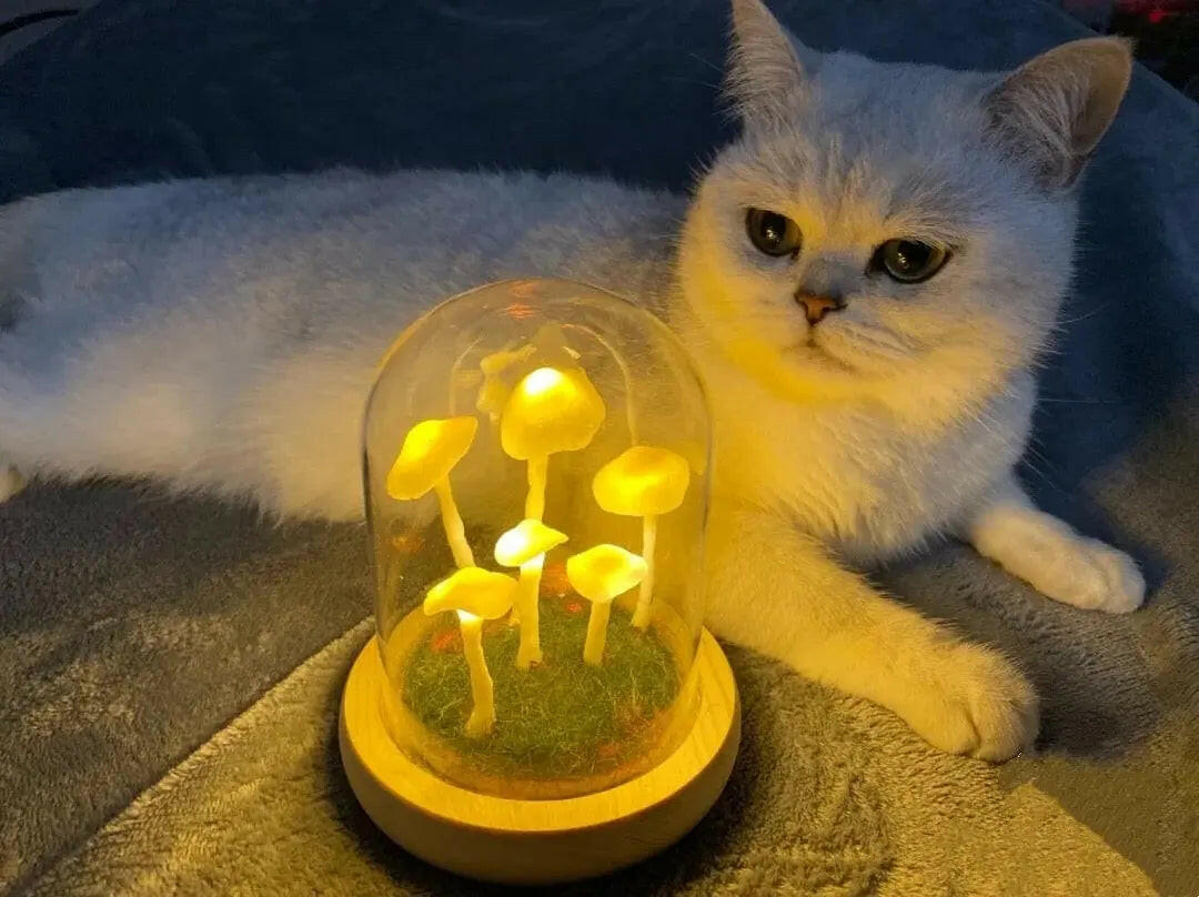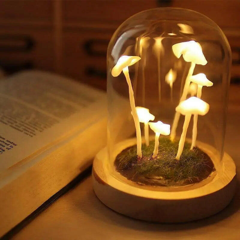 Glaskuppel LED Svampe Bordlampe | USB-drevet